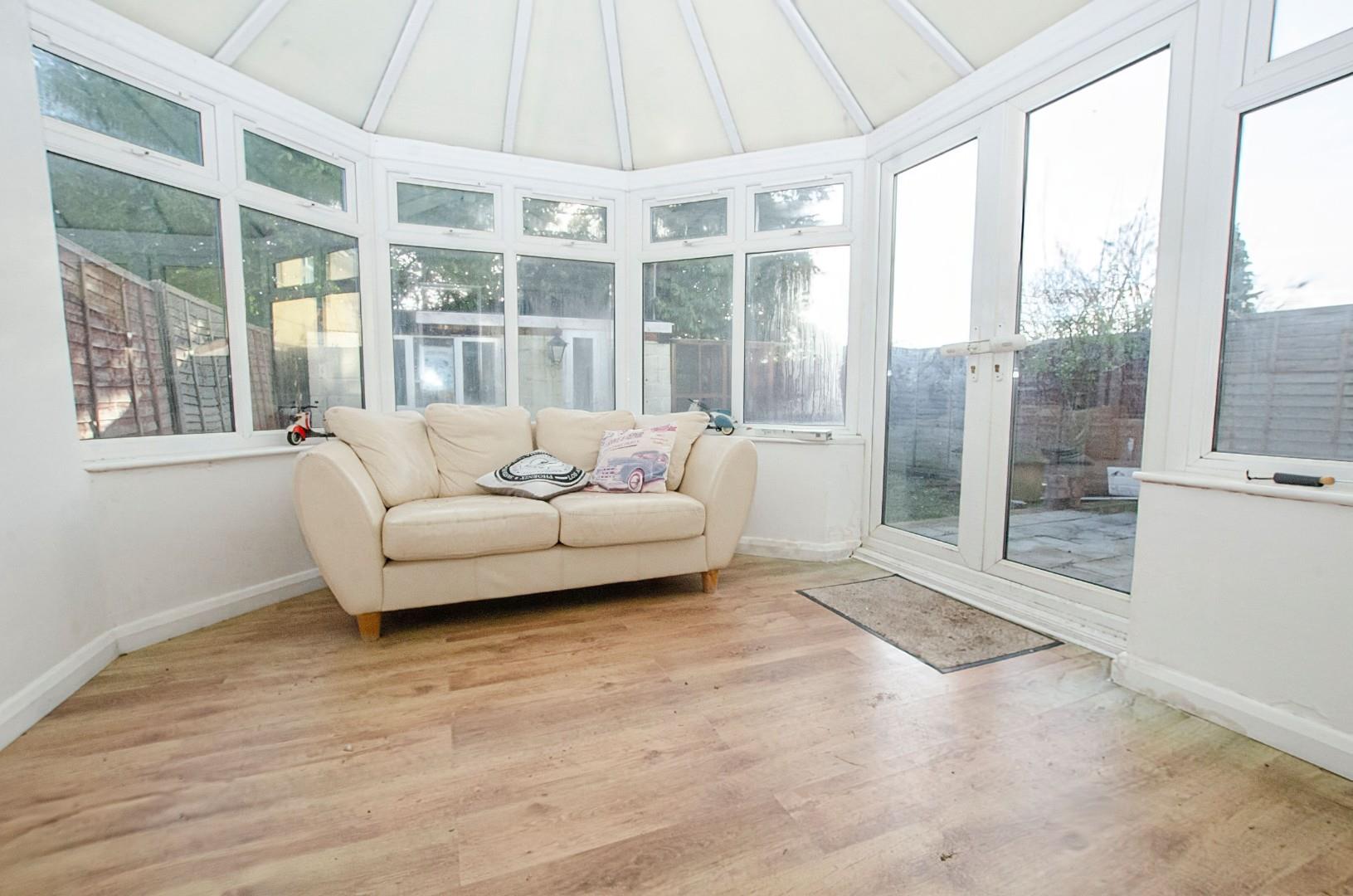 Wood effect flooring, double glazed windows to rear aspect, door to garden.